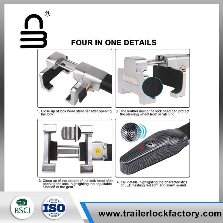 · निवारक: अलार्म सक्रिय होने पर गति बढ़ाने वाले लाल एलईडी संकेतक को चमकते हुए। चोरों को पहले से सूचित करें कि यह एक सामान्य स्टीयरिंग व्हील लॉक नहीं है और अपने वाहन से दूर रहना है। एंटी-पिकिंग प्रोटेक्शन सिस्टम के साथ सुरक्षा लॉक के साथ एंटी-चोरी कार स्टीयरिंग व्हील बार। 2 प्रतिवर्ती फ्लैट कुंजियाँ।